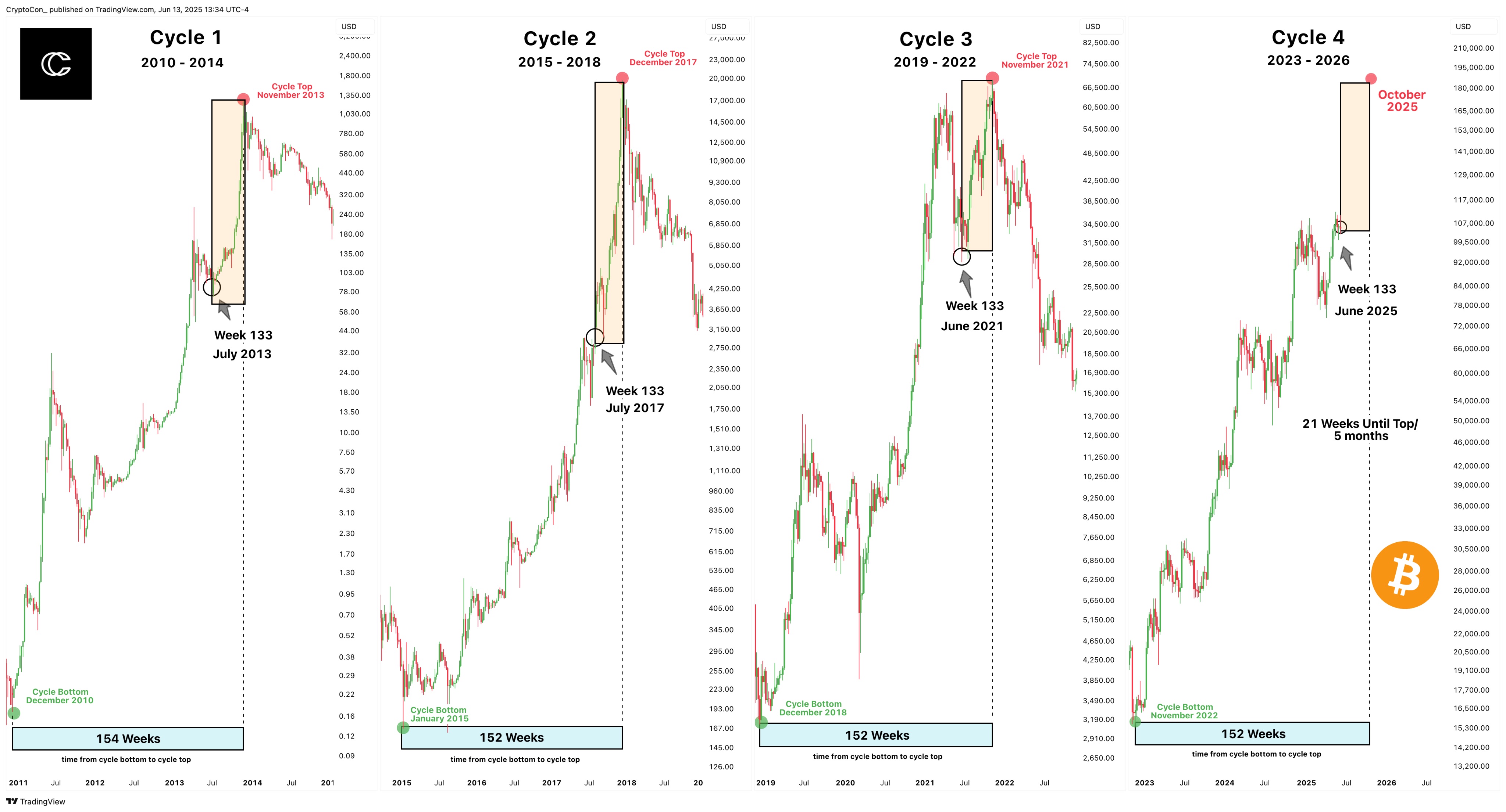 “Bitcoin, Eylül/Ekim 2025'te Tori pazarındaki zirvesine ulaşacaksa, tarihi ablukanın kullanım döngülerine göre, … Bu sadece 2-3 ay sonra,” diye yineledi.