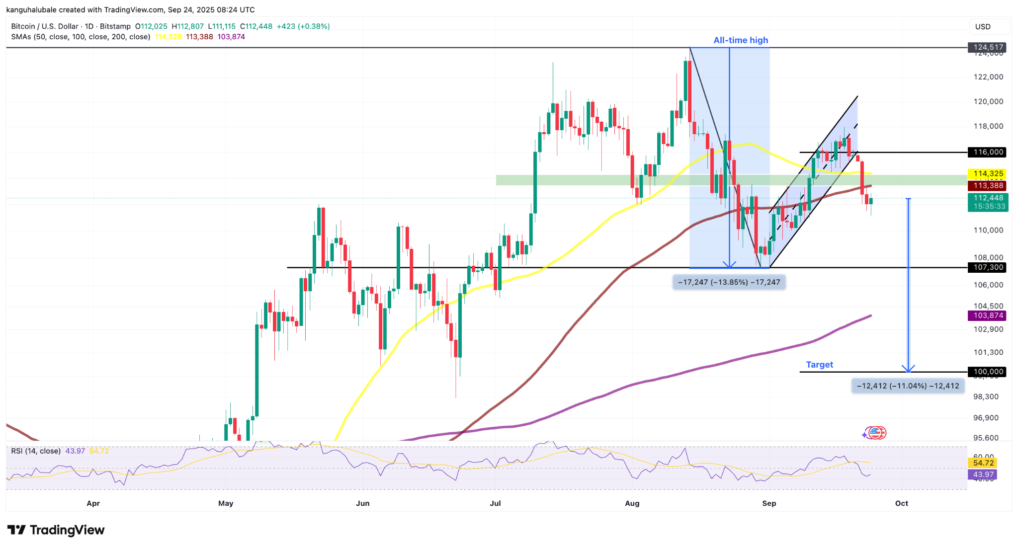Bitcoin Bulls ayrıca, basit 50 günlük mobil ortalama (SMA) ve 114.300 $ 'dan 114.300 $' dan sağlanan desteği kaybetti ve bu da satış tarafındaki baskının yoğunluğunun altını çizdi.